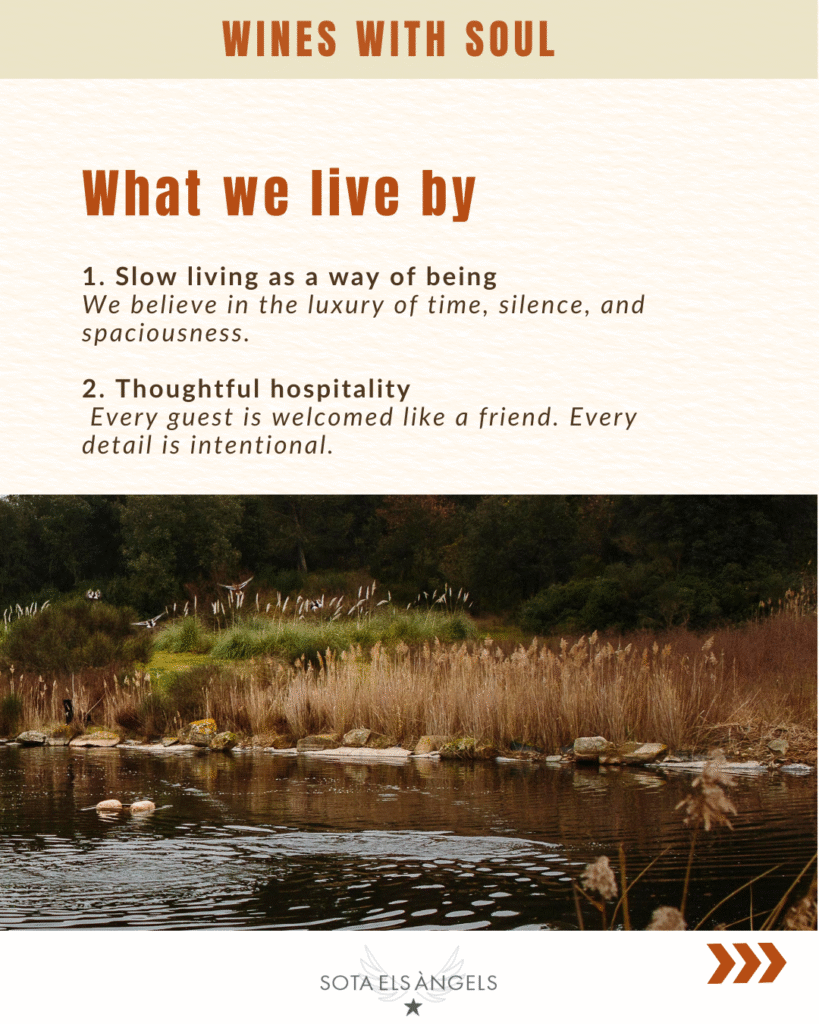 Sota Els Angels produit du vin biodynamique dans la région de Girone en Espagne. L’entreprise familiale souhaitait diversifier son offre en proposant des séjours uniques centrés sur le slow-living, la santé et la connexion à la nature. Leur philosophie : allier excellence viticole, pratiques durables et bien-être dans un cadre naturel préservé.